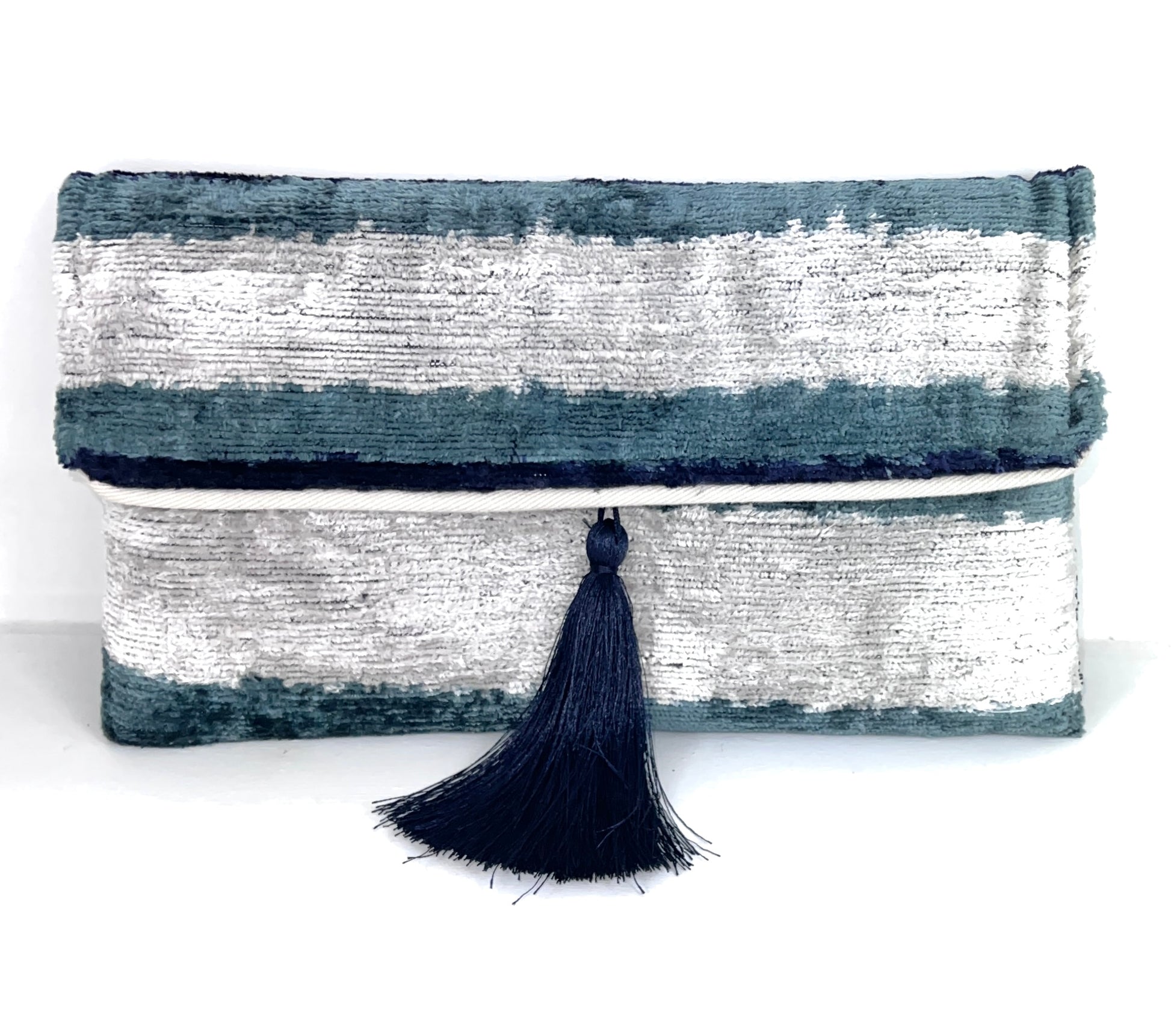 Ultra-soft velvet with a silky tassel in dark ink blue, we love this bag, which can be converted into a clutch, because of its perfect dimensions and dreamy colors.