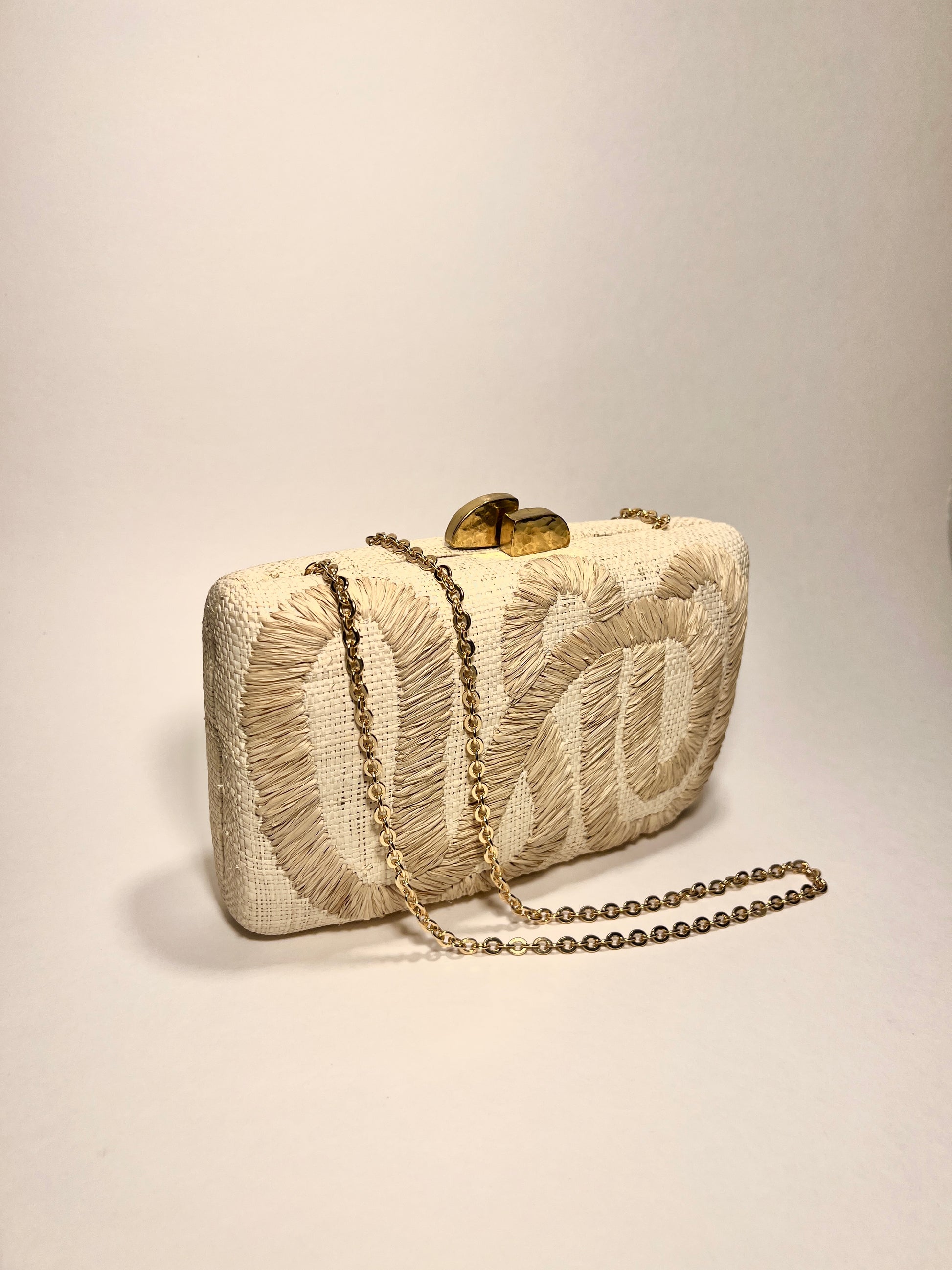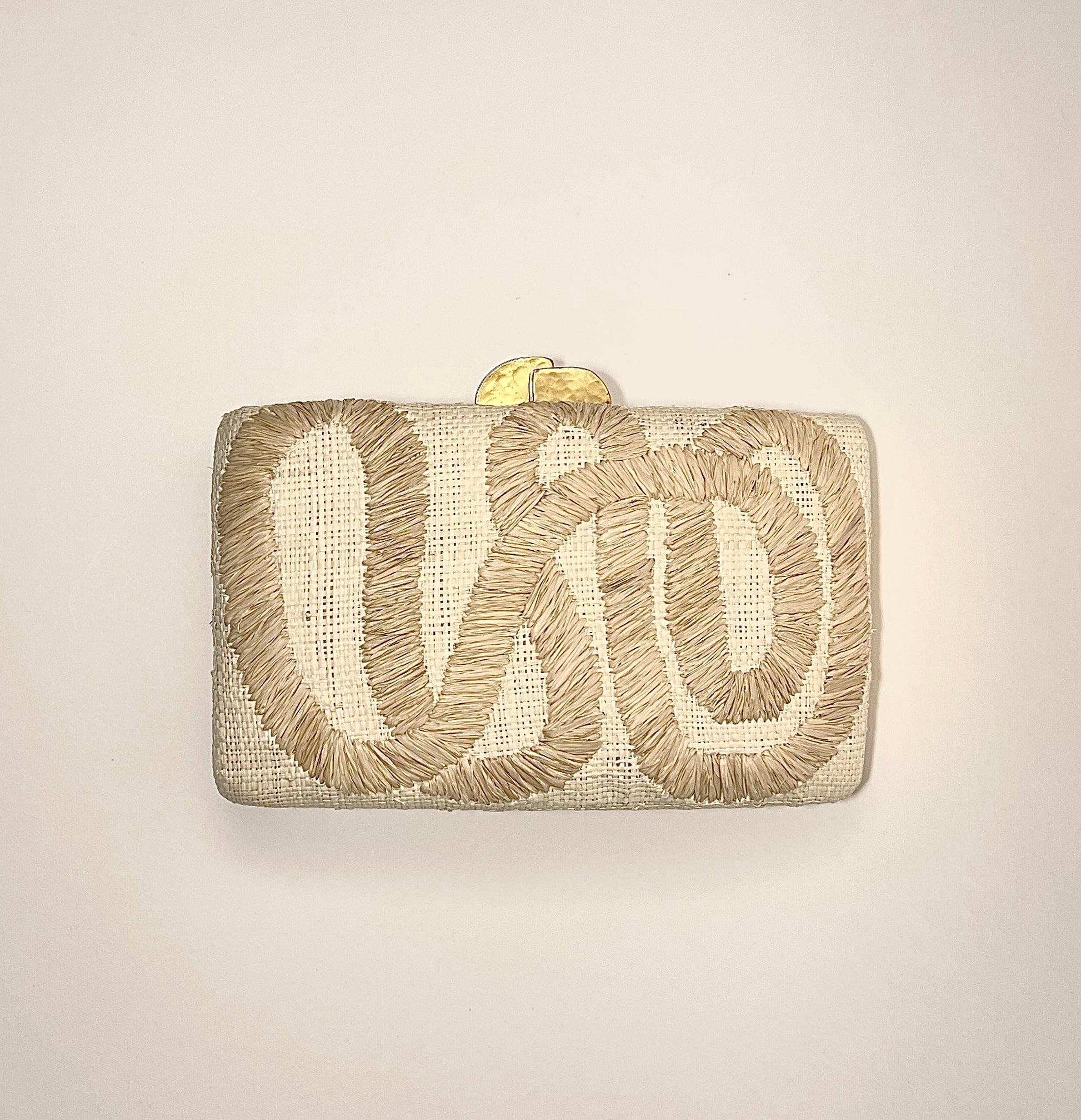 This timeless raffia purse is a work of art! It's entirely handmade with natural fibers, and it's fully lined in cotton twill, with a little interior pocket, by skilled artisans. The raffia will acquire, over time, a wonderful patina, making this little treasure even more beautiful! The hammered brass clasp adds elegance to the design. It can be used as a clutch or as a crossbody.