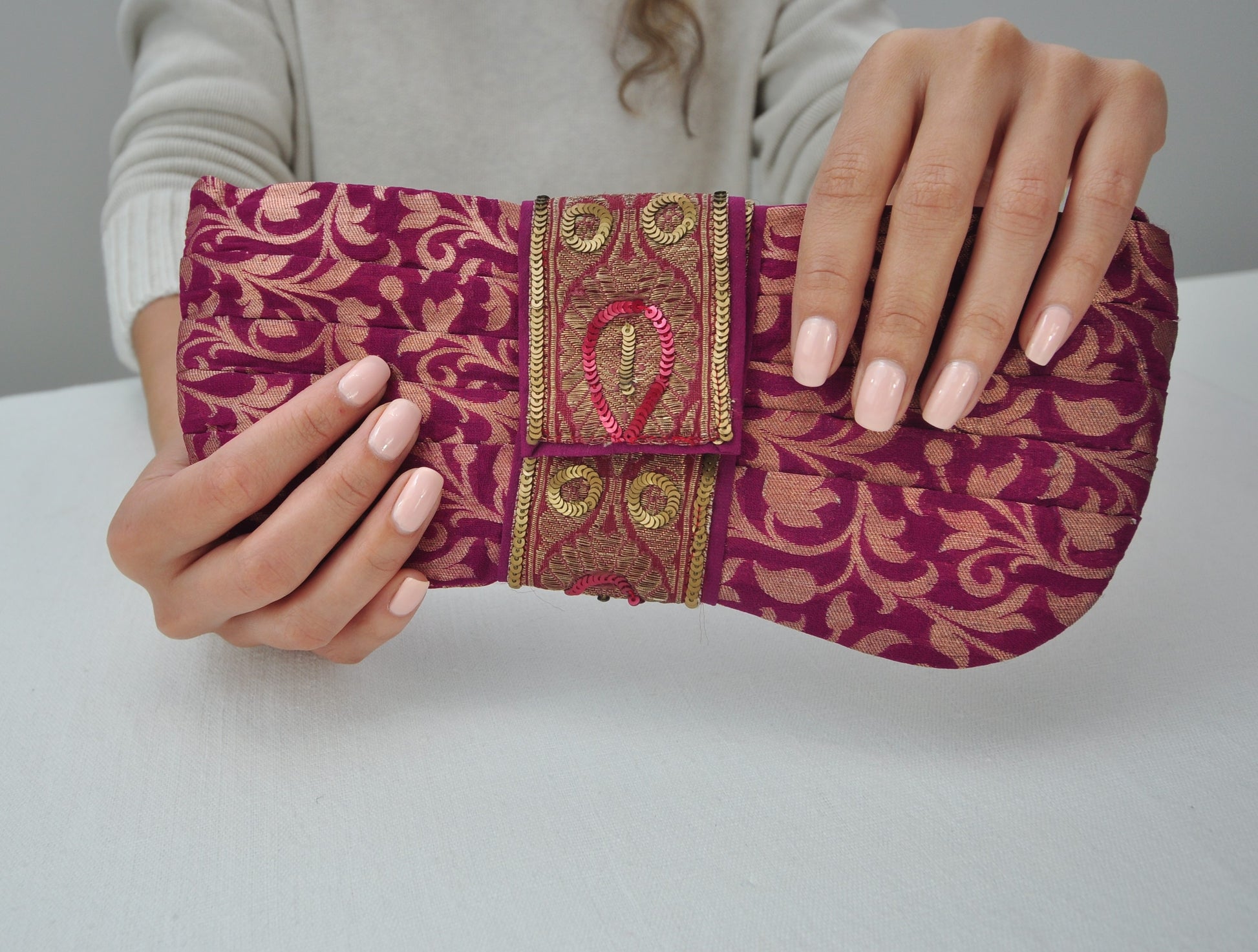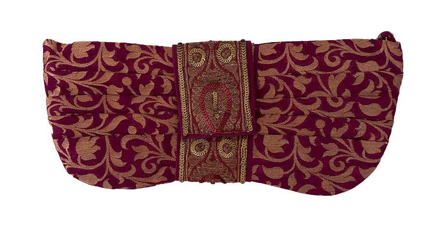 We cannot get enough of this rich magenta color, it's reminiscent of an opulent saree from India, it's lovely and exotic! This hand-made little clutch will elevate your little black dress to another level altogether, and make you feel like you are carrying a jewel! It is, of course, roomy enough to carry all your essentials for a night out.